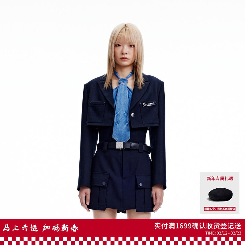 REVAN芮范设计师款甜酷牛仔拼接西装套装RN90101273