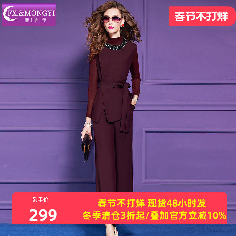 菲梦伊红色西装套装女秋季商务通勤气质无袖上衣职业西裤OL两件套