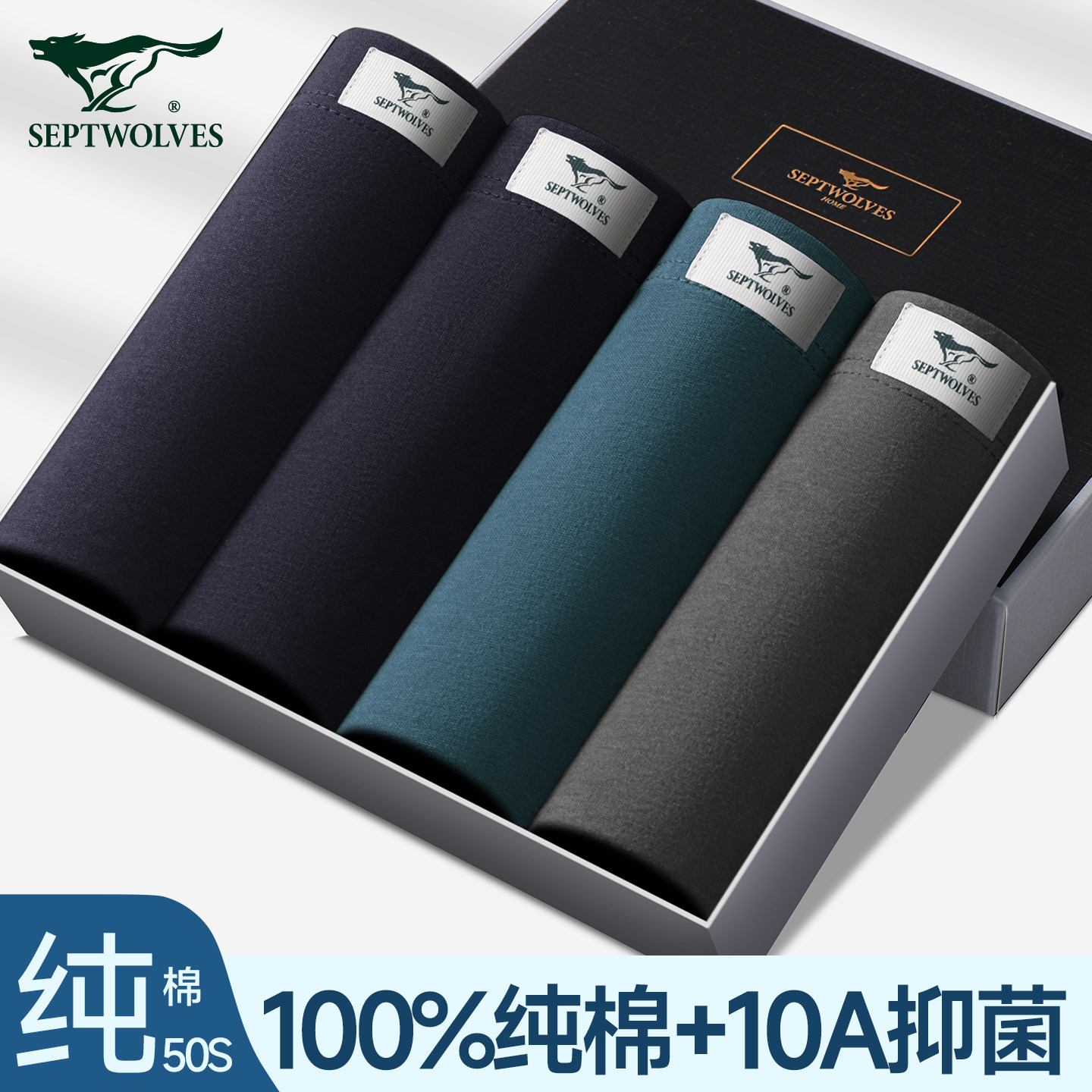 七匹狼内裤男士纯棉100全棉平角裤亲肤透气抗菌四角裤大码四角裤