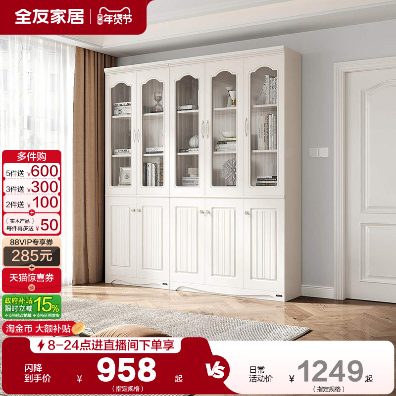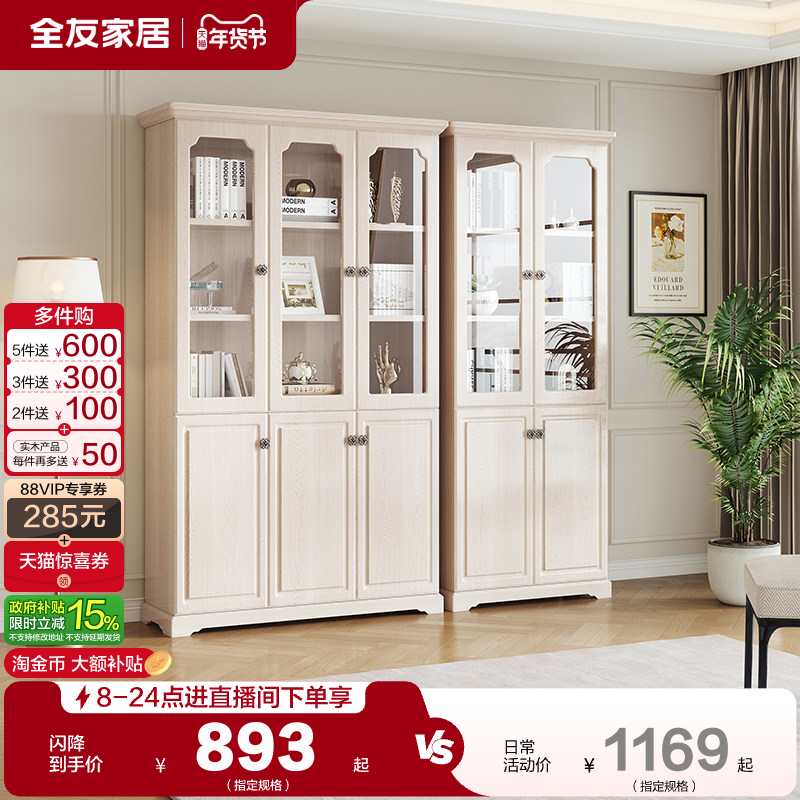全友家居客厅靠墙带玻璃门组合书柜卧室家用小户型半开放落地书橱