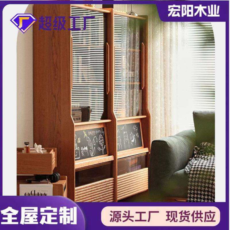 实木书柜落地家用客厅展示柜置物柜带推拉玻璃门定制移门书架书橱