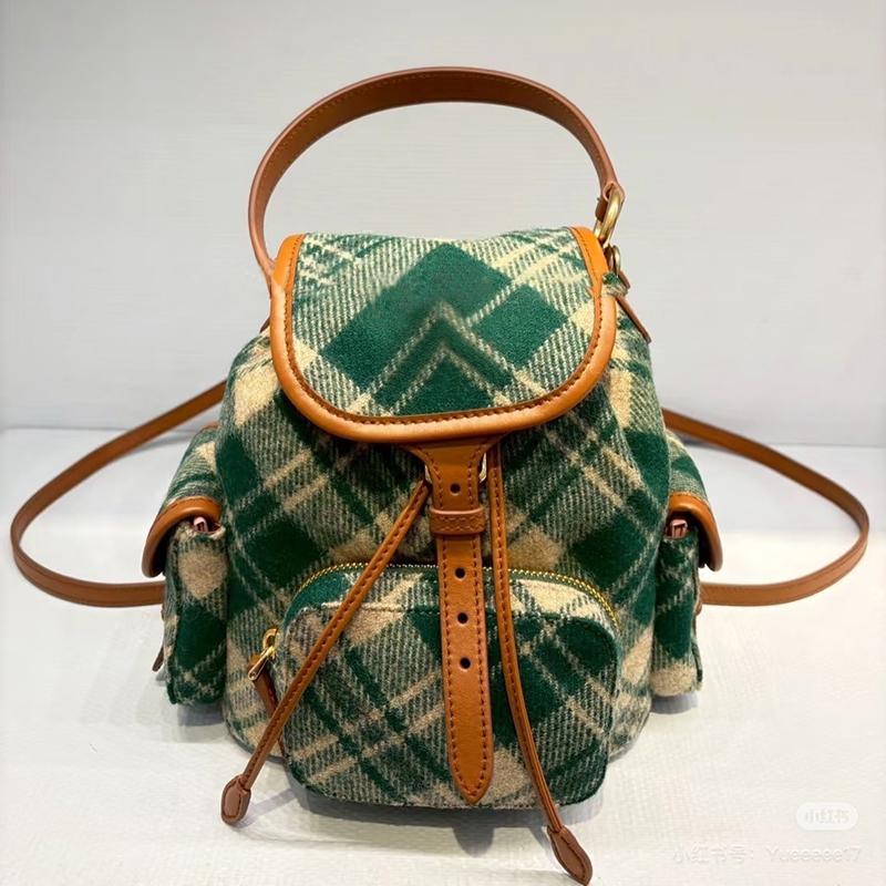 2025明星同款双肩包毛呢格纹迷你小背包彩色条纹学院风时尚女包潮