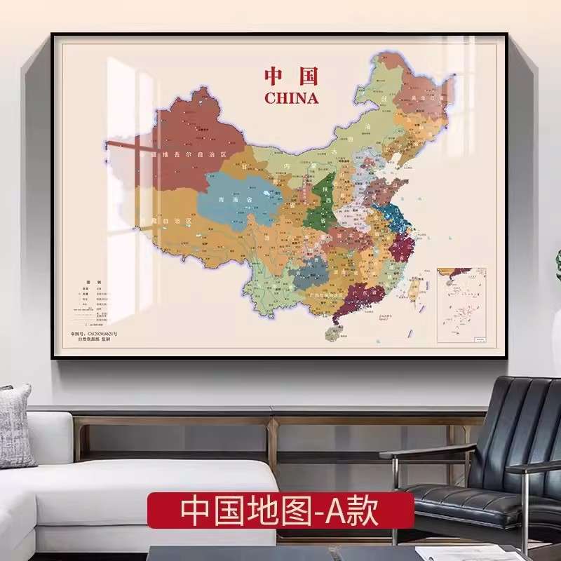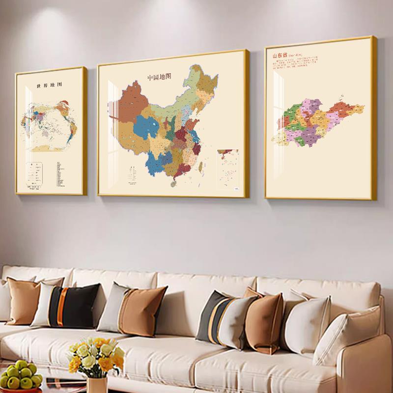 中国世界地图装饰画办公室挂画省份地图书房卧室客厅沙发地图挂图