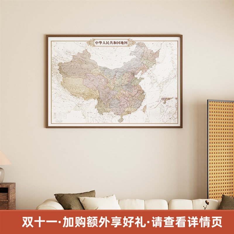 2024中国地图仿古中国世界地图 羊皮卷色仿古世界地图装饰画 中华人民共和国地图 书房挂图壁画 地图贴墙 正