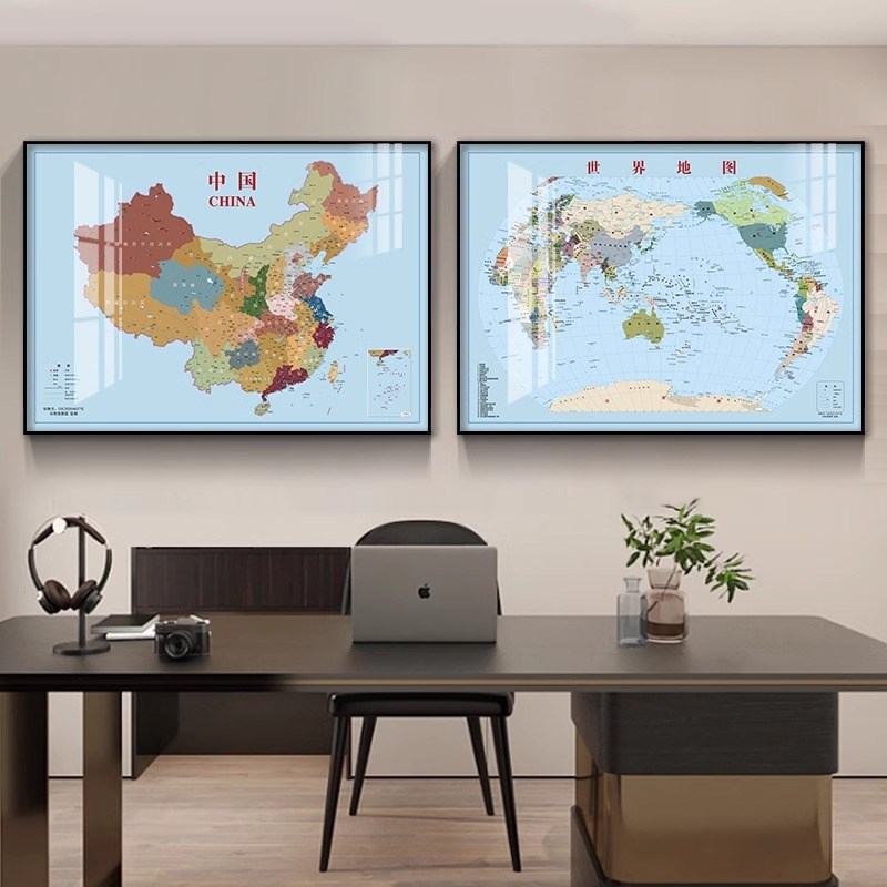 2025新版办公室地图装饰画挂画中国世界高清地图壁画客厅卧室挂图