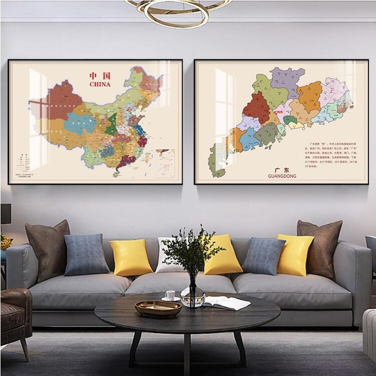 广东浙江省份地图世界中国挂图简约版客厅办公室书房墙面装饰挂画