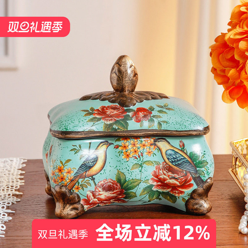 美式陶瓷首饰盒收纳盒家用梳妆台收纳饰品盒欧式复古家居装饰摆件