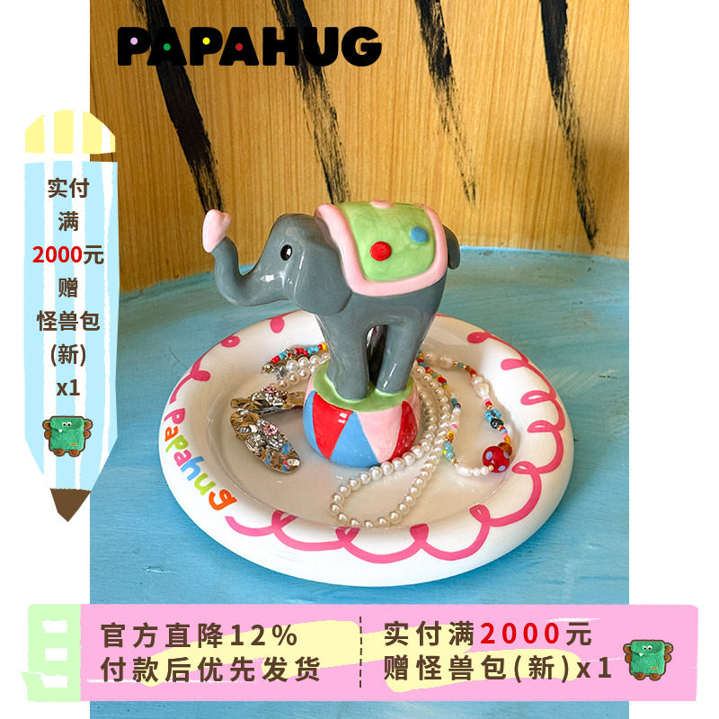 PAPAHUG 首饰盘项链收纳盒大象陶瓷摆件梳妆台饰品发饰耳环收纳盒