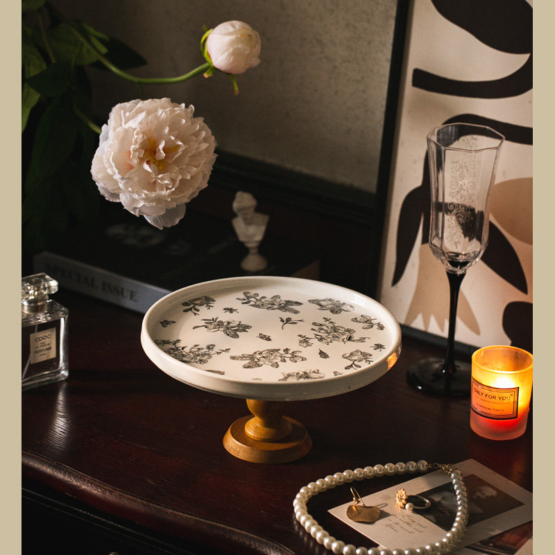 法式高脚蛋糕盘 收纳盘 陶瓷盘中古风复古小香风展示首饰收纳摆设