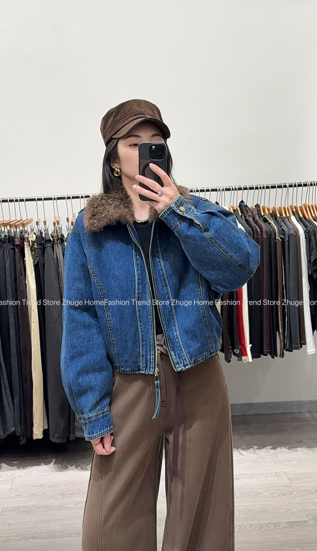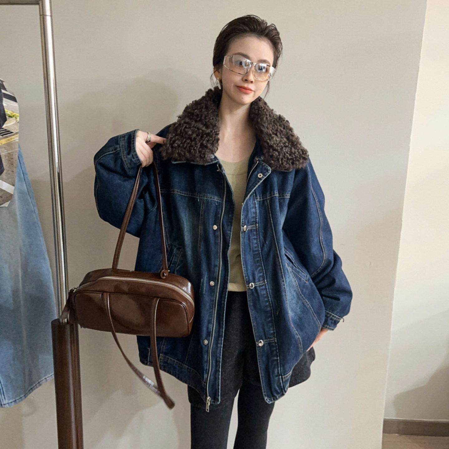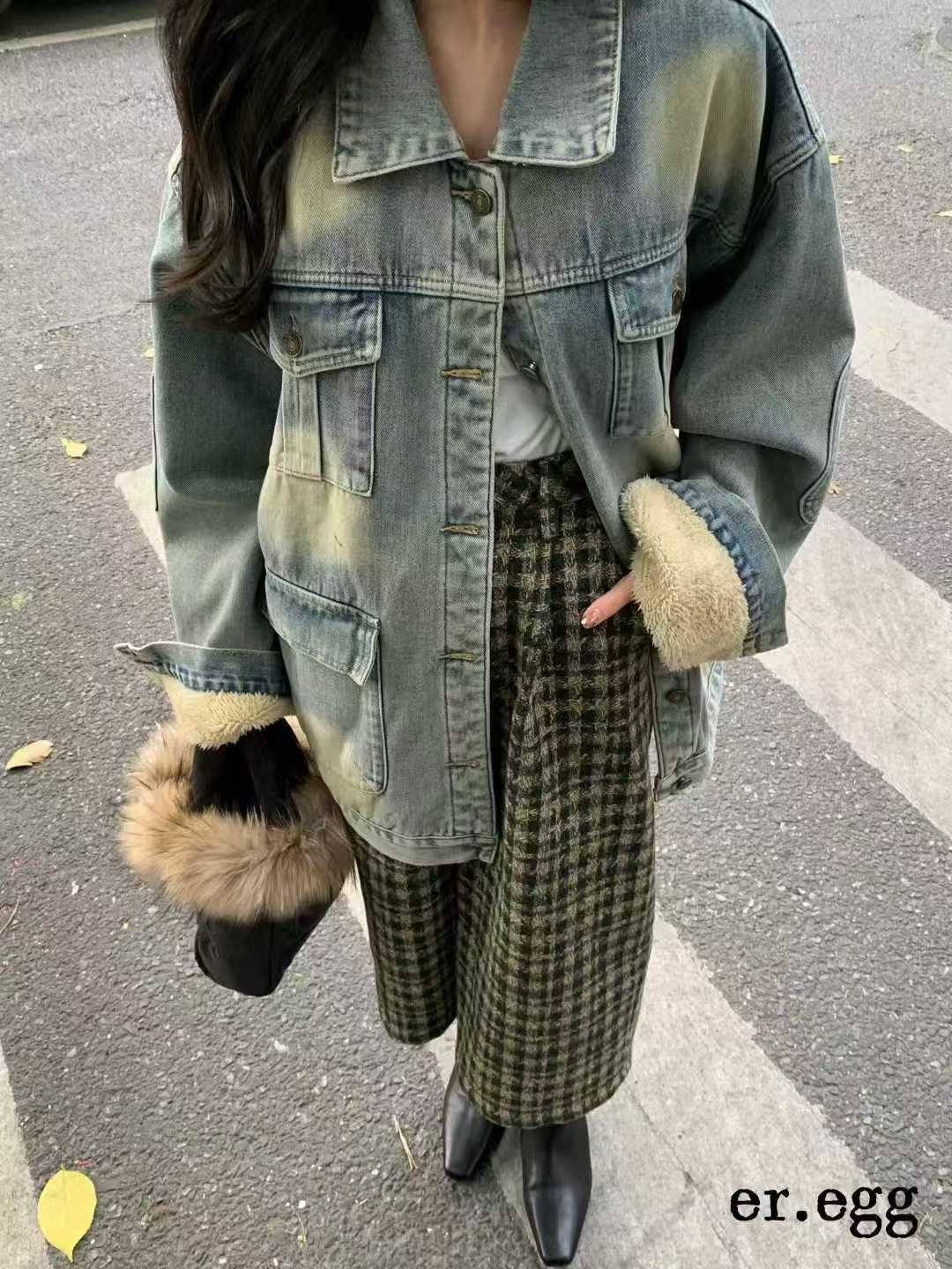 - 牛仔加绒外套女