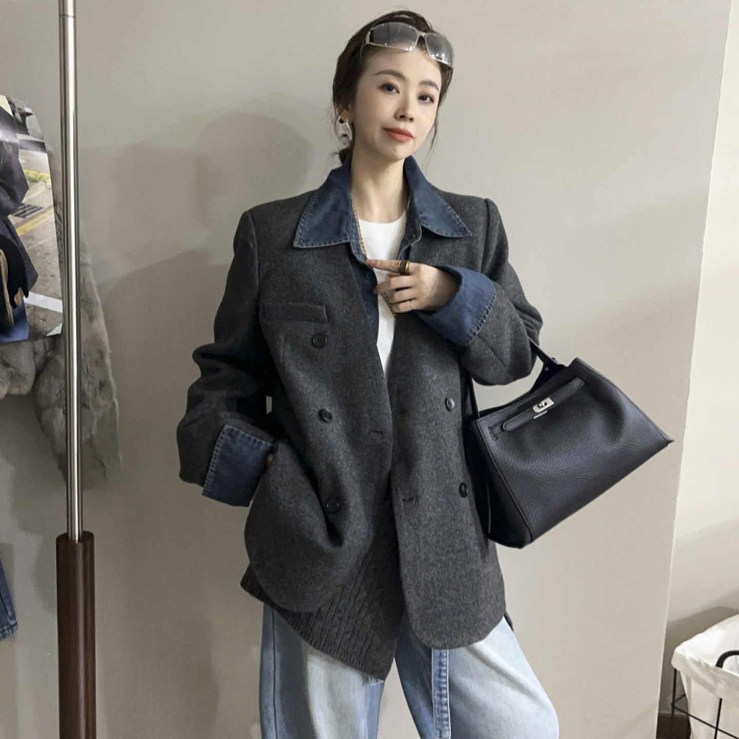 假两件牛仔翻领西装羽绒服女欧洲站2025冬装新款欧货女装短外套潮