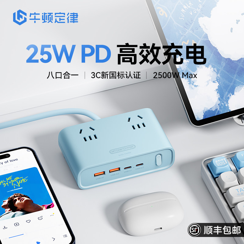 牛顿定律小能岛桌面充电站usb快充插排带typec插座高颜值插线板