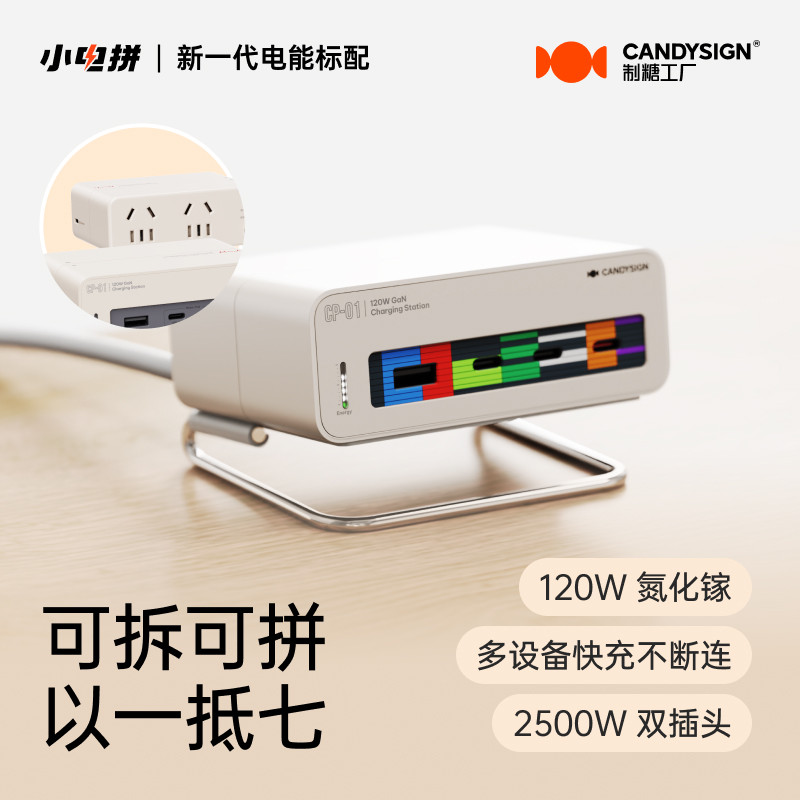 制糖工厂硬糖120W充电器小电拼家旅双栖多口桌面充电站适用iPad苹果16/17安卓USB氮化镓快充插头节日礼品