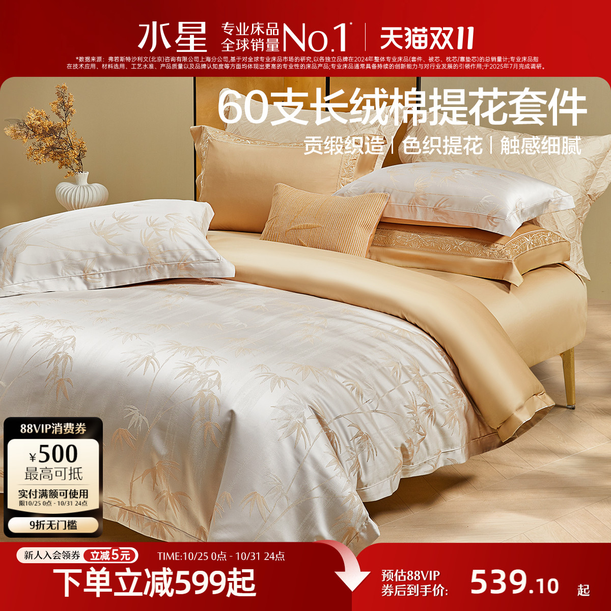 水星家纺四件套提花套件60支长绒棉贡缎床单被子套新中式床上用品