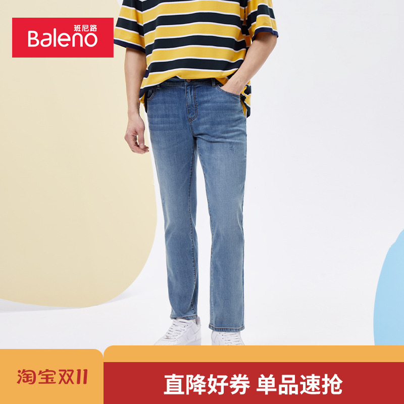 班尼路男装舒适百搭潮流纯色牛仔裤男装简约原色牛仔直脚长休闲裤