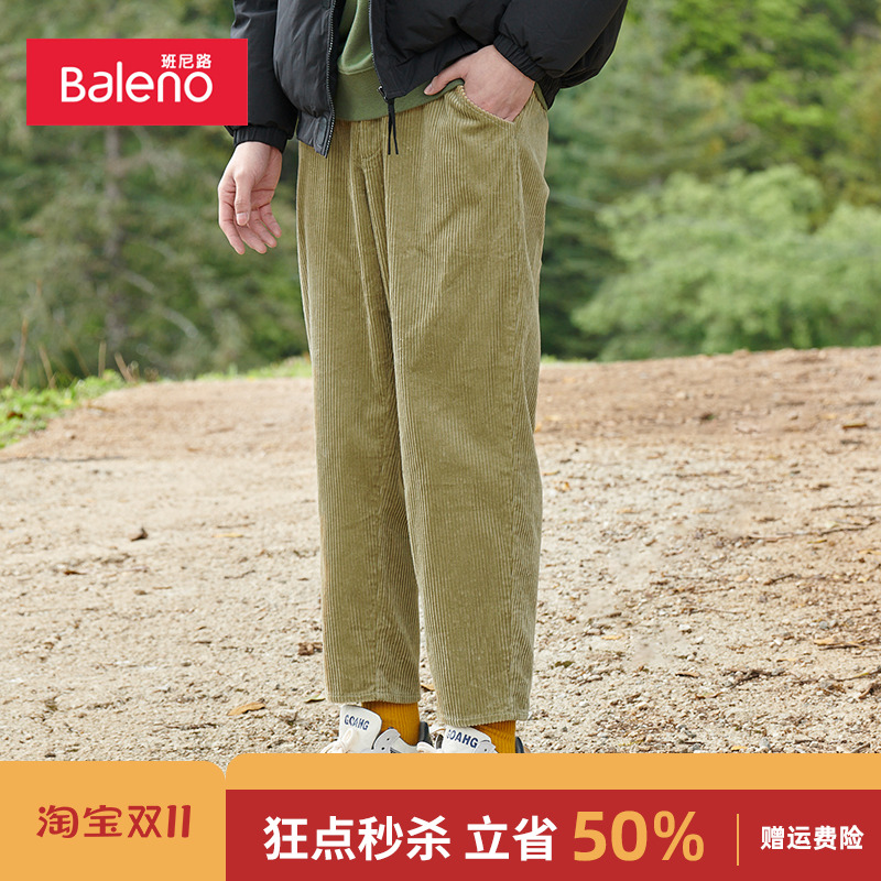 班尼路春秋新品男装休闲纯棉长裤橡筋腰保暖灯芯绒锥型裤休闲时尚