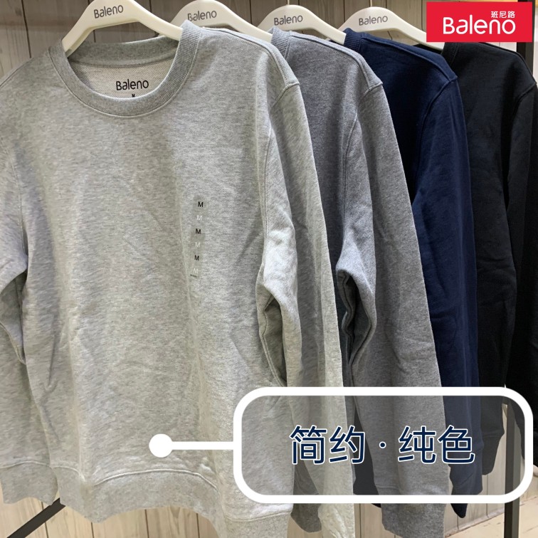 班尼路男装基础百搭保暖加绒纯色卫衣 简约居家休闲圆领套头上衣