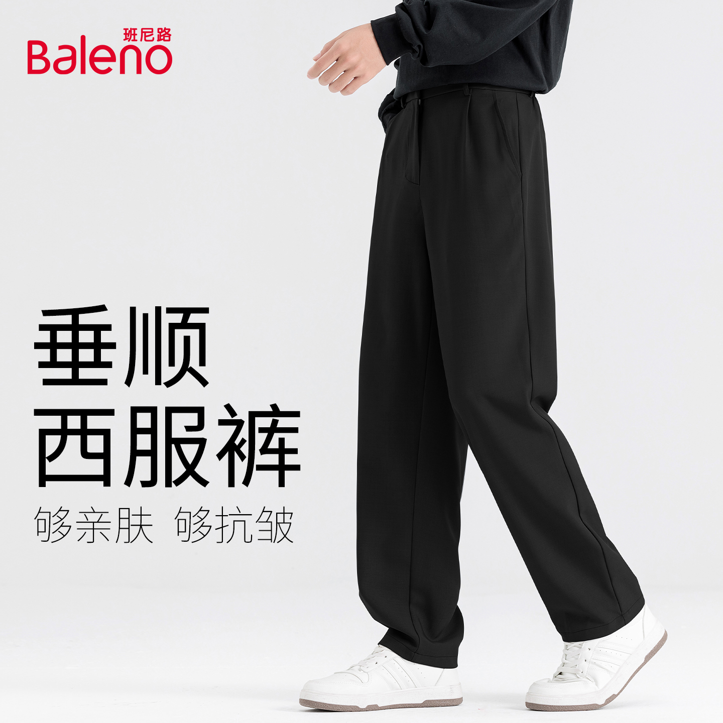 班尼路黑色休闲裤男款秋季轻商务日常通勤男装西裤宽松垂感裤子男