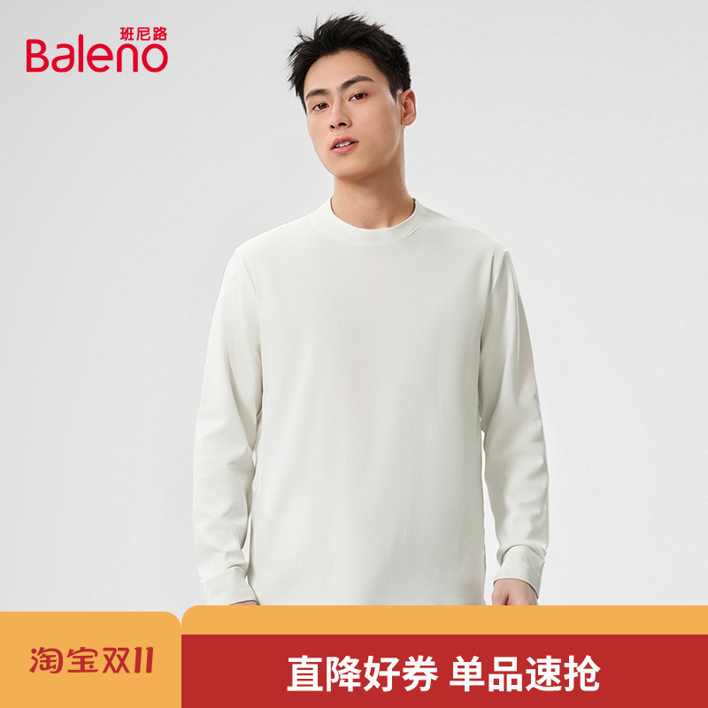 Baleno班尼路男装净色半高领打底衫秋冬新款百搭舒适纯色T恤长袖