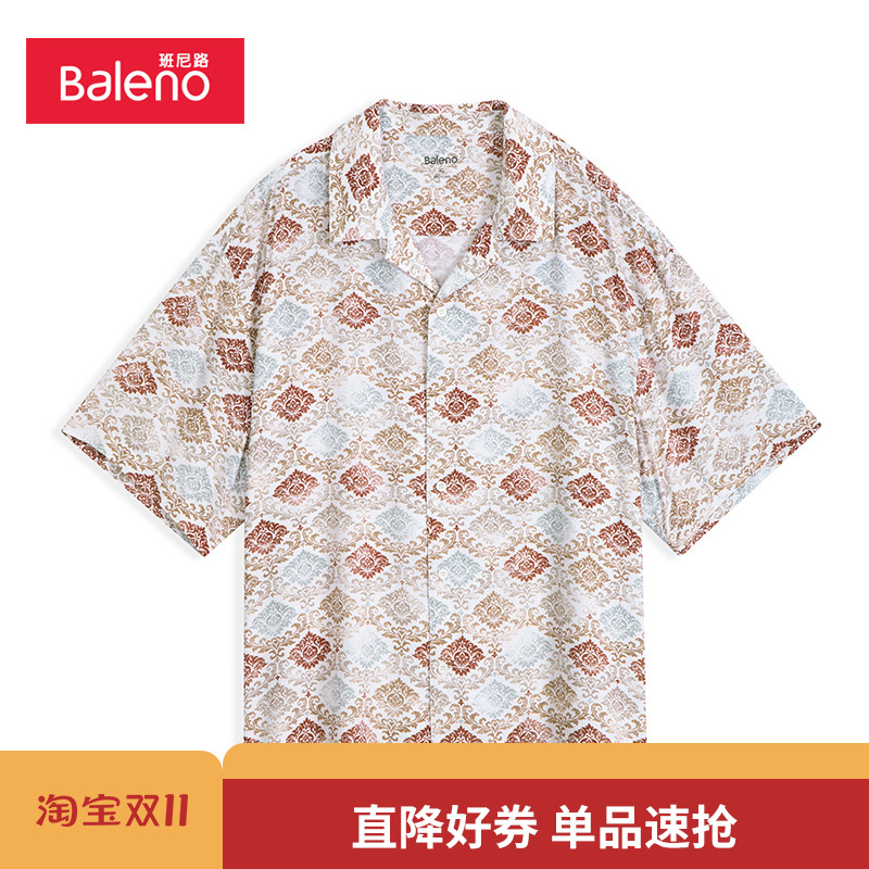 包邮 班尼路男装印花t恤圆领短袖休闲纯棉套头上衣男青年新款时尚