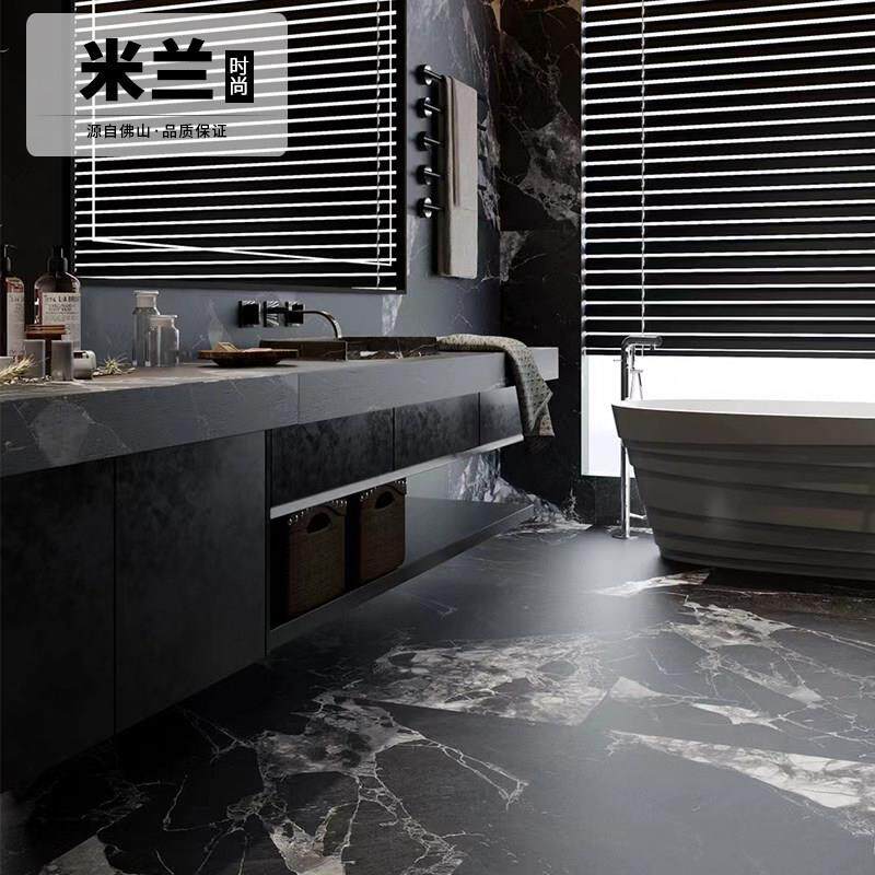 黑色化妆室浴室质感瓷砖地砖哑光600x1200防滑酒店会所防滑彷古砖