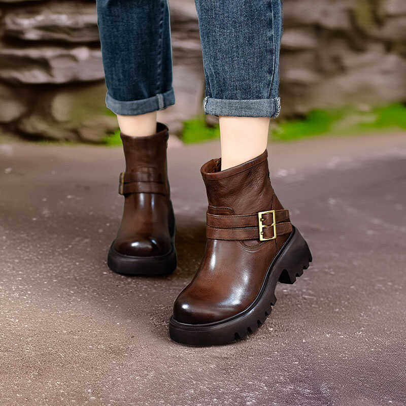 四起哥2025秋冬新款头层牛皮轻奢时尚短靴女厚底手工真皮骑士靴女