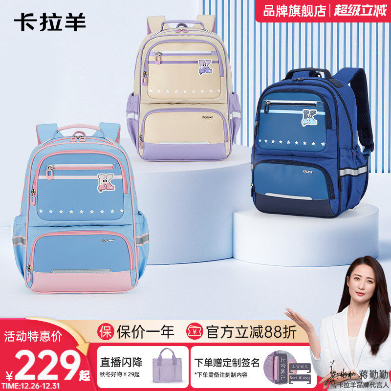 卡拉羊幼儿园书包女孩儿童小学生书包1-2-3年级大班轻便校园背包