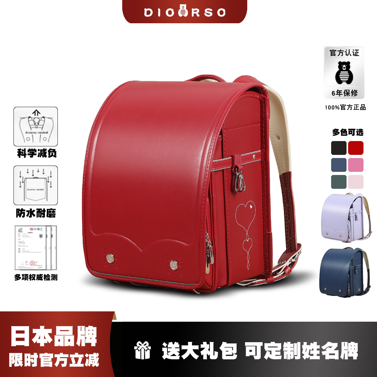 dioorso日本小学生书包男女减负护脊儿童双肩包1-3-6年级防水日式