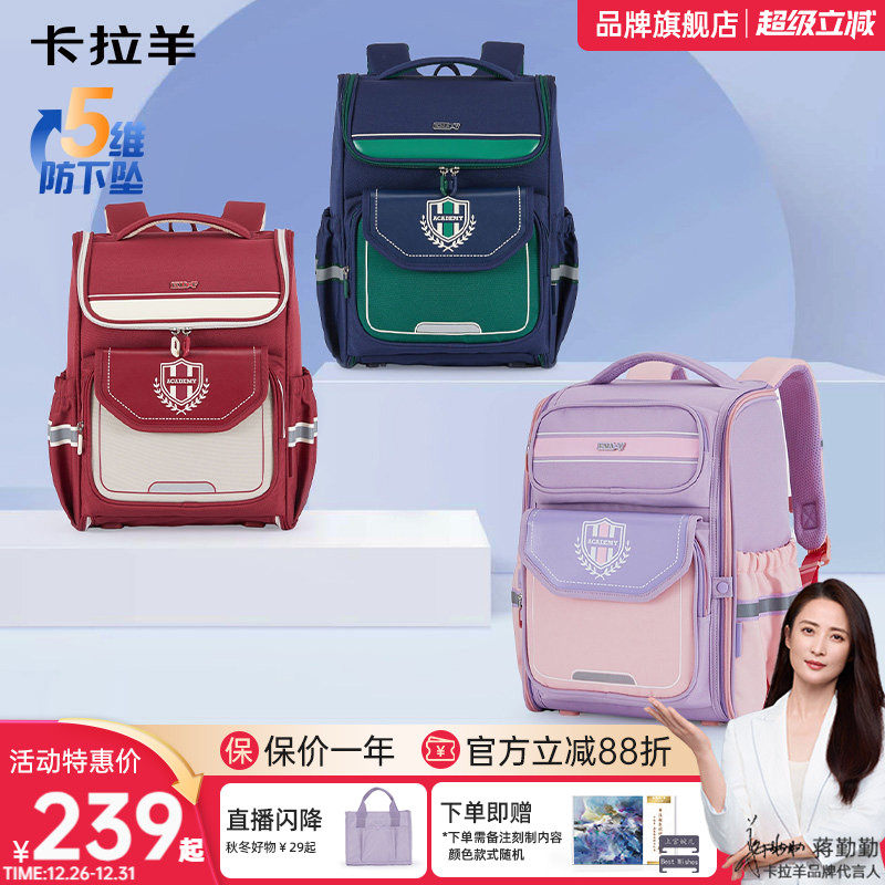 卡拉羊小学生书包减负儿童男女幼儿园一年级1-3年级女生轻便超轻