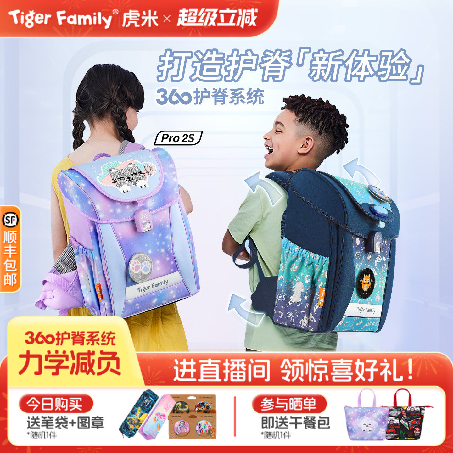 tigerfamily虎米护脊减负书包小学生1-3-5年级儿童男女孩双肩背包