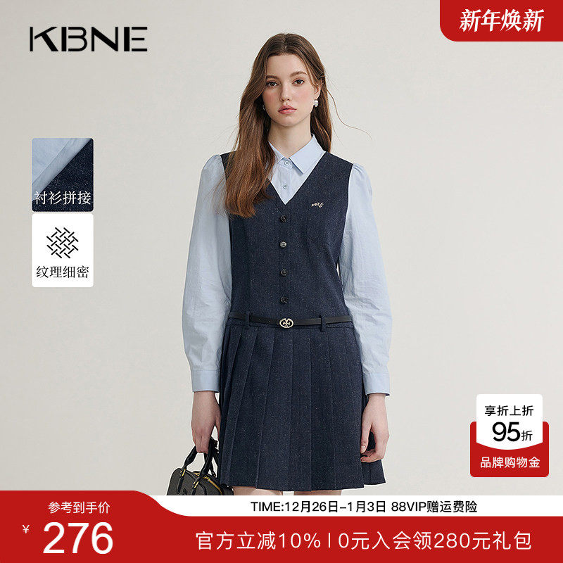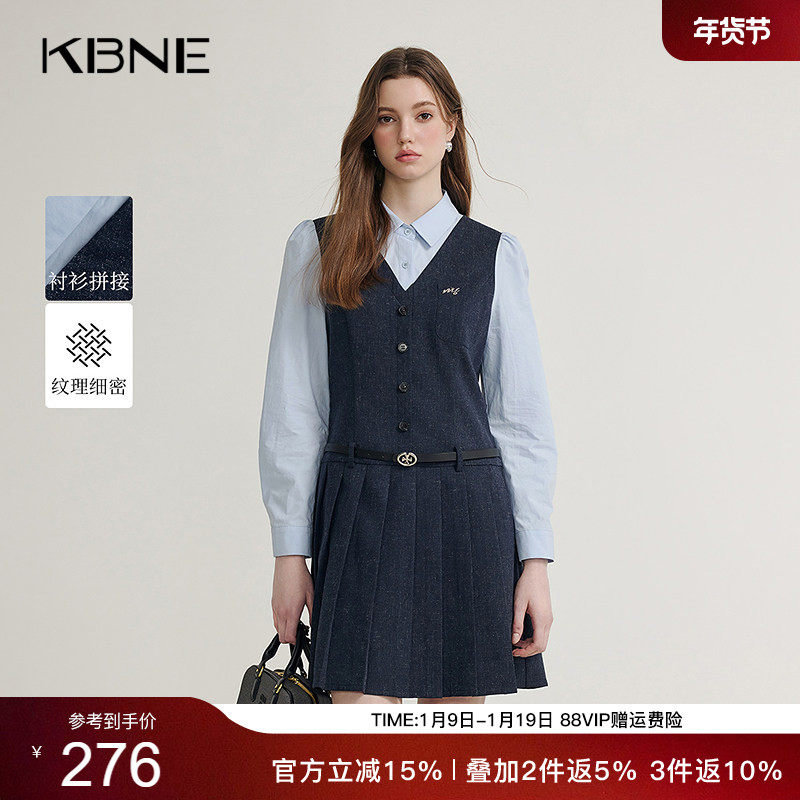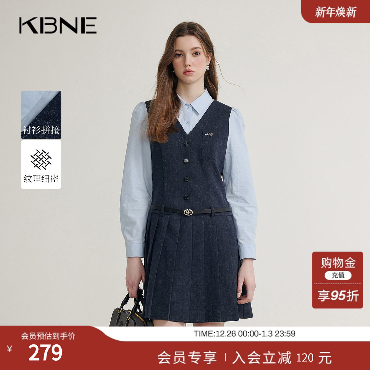 KBNE连衣裙女纯色直筒裙春秋新款长袖背心裙气质慵懒亚麻中长裙