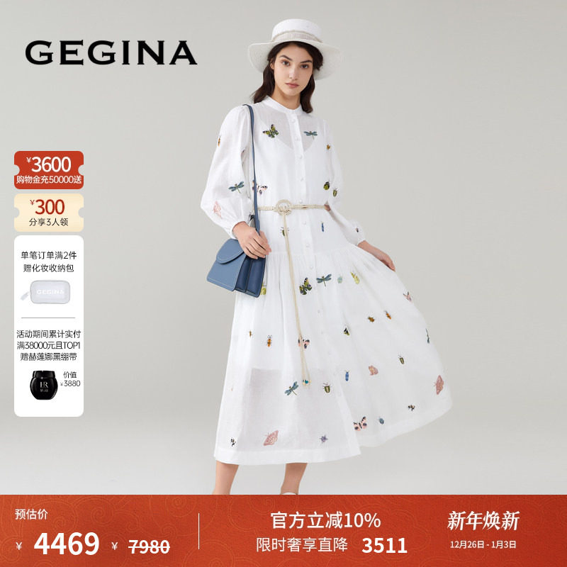 【亚麻】GEGINA吉吉娜女装春夏商场同款长袖收腰连衣裙气质长裙