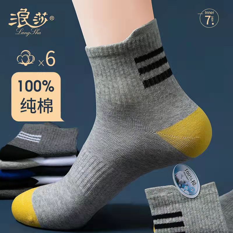 浪莎袜子男四季纯棉中筒吸汗透气男士棉袜秋冬季加厚短袜简约男袜