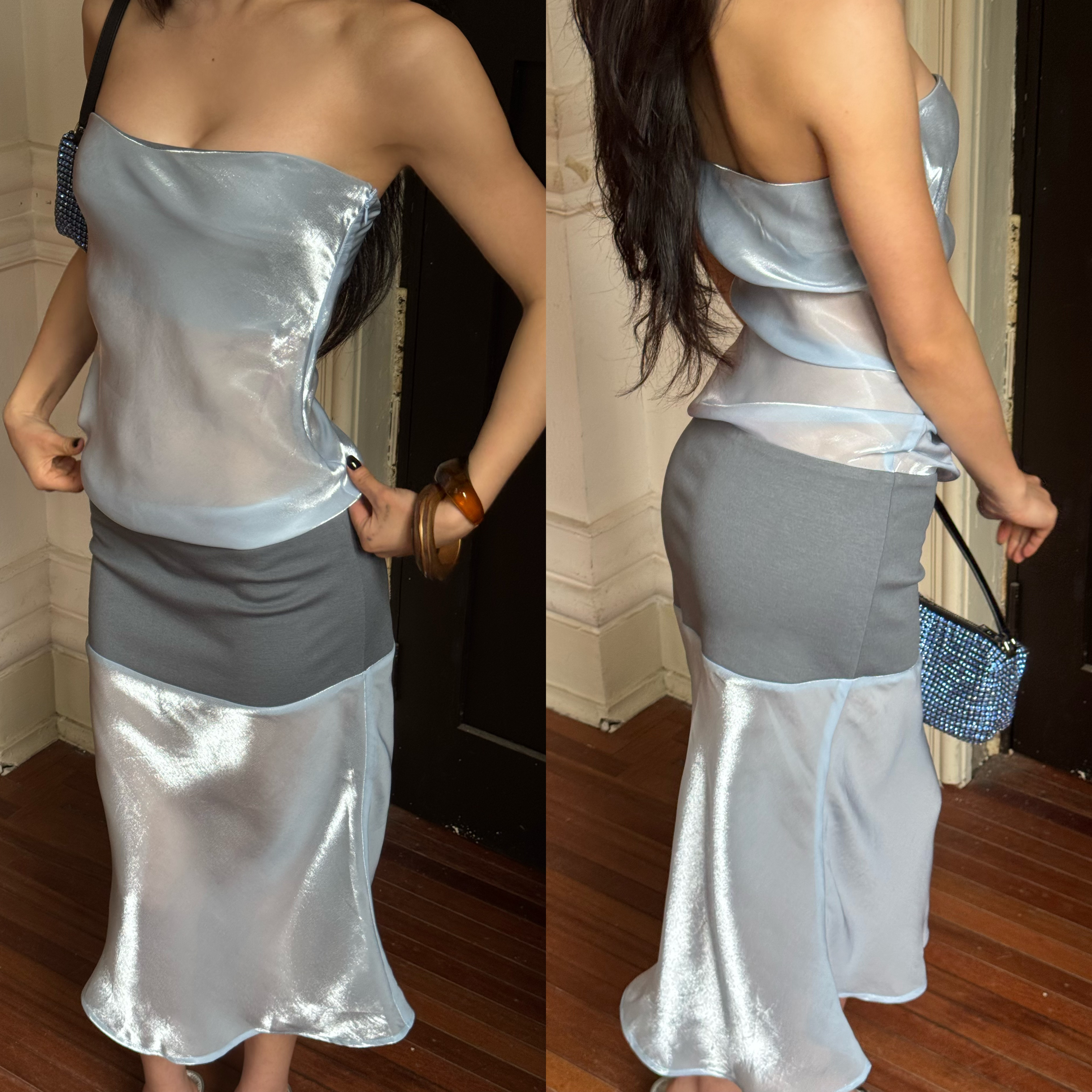 ICVIBE 海洋蓝调水波·特殊流动感面料 独家定染内置抹胸包臀长裙