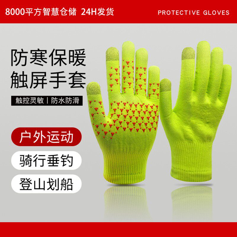 防水防寒触屏钓鱼手套硅胶防滑尼龙加厚保暖滑雪防护工作劳保手套