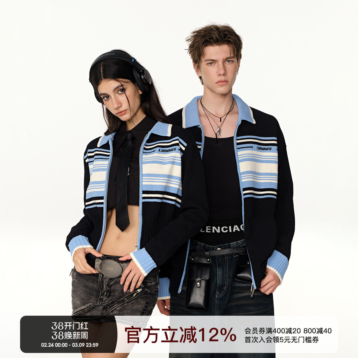 黄俊捷同款FORNINES国潮条纹针织开衫男女长短款情侣毛衣春季外套