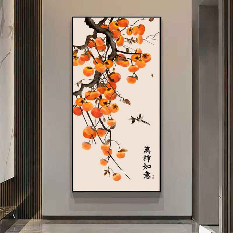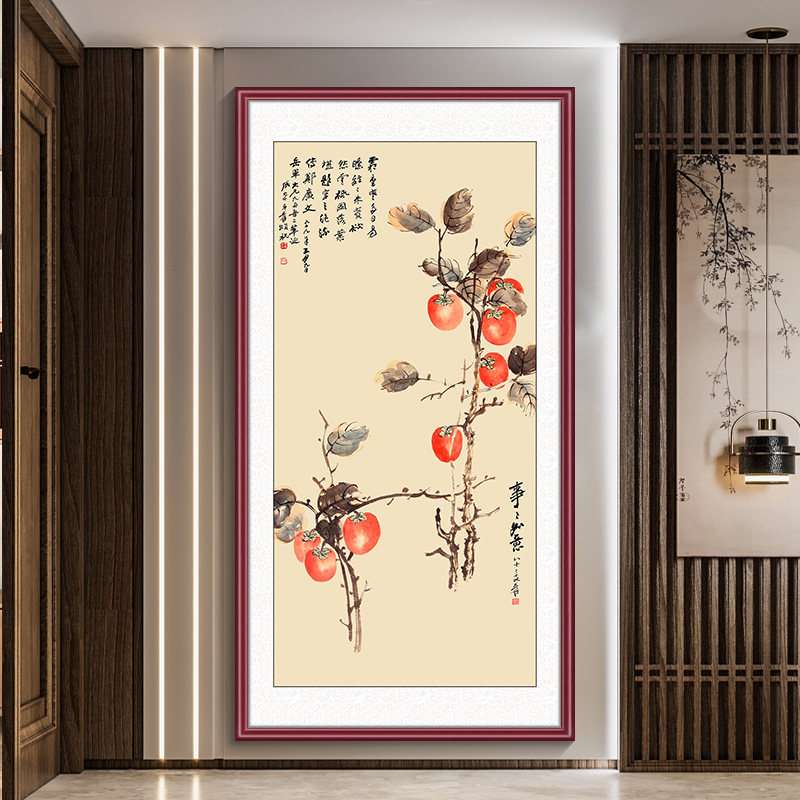 事事如意玄关装饰画走廊过道中式挂画柿子温馨客厅背景墙艺术壁厚