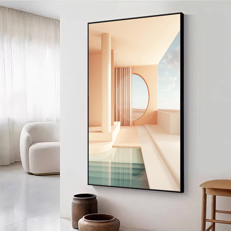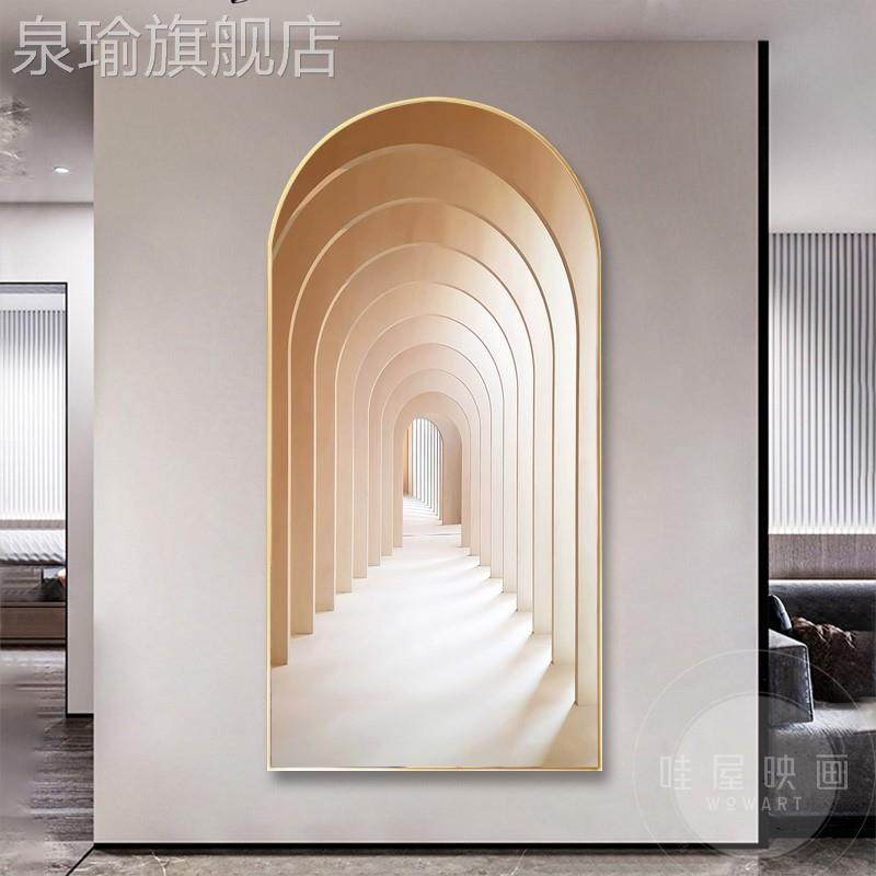 网红画入户玄道关装饰画走廊过建筑空间感壁画酒店轻奢客厅弧拱形