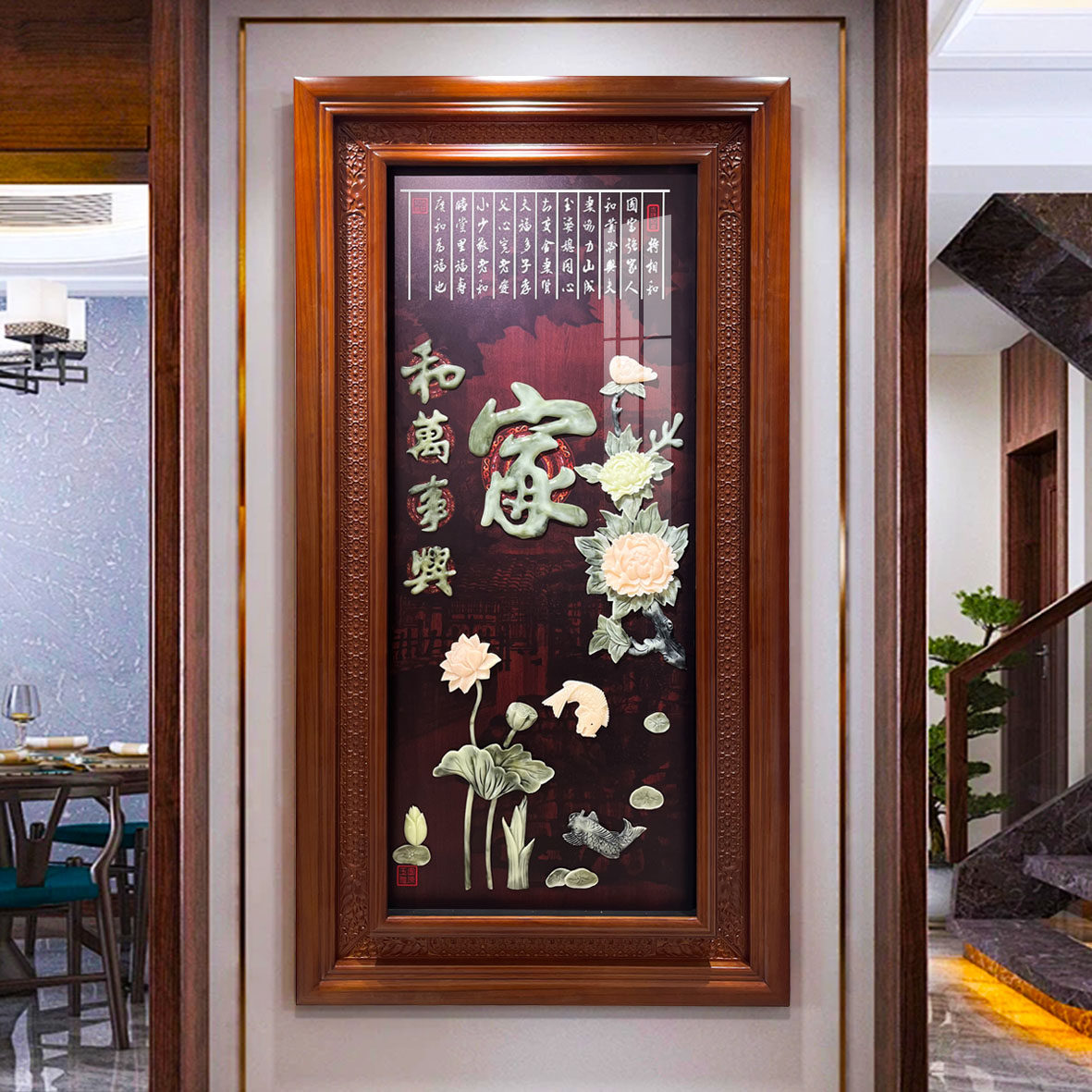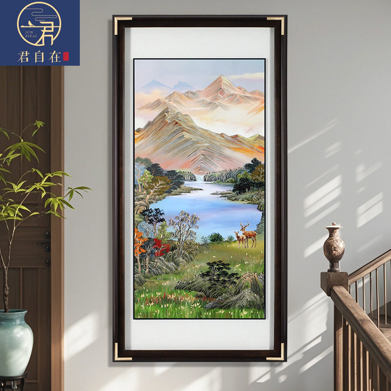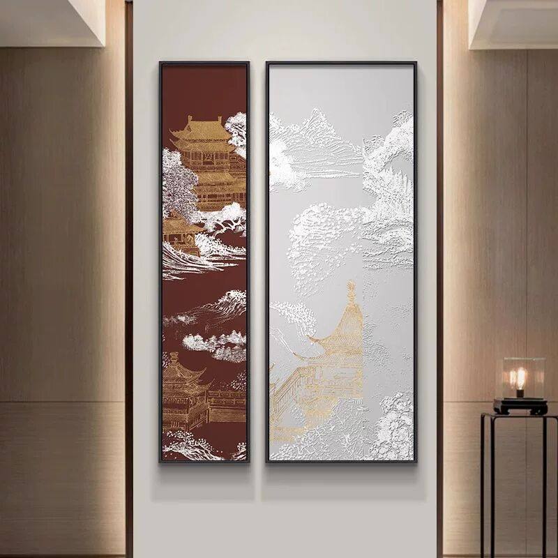 新中式入户玄关装饰画走廊过道尽头挂画正对门竖版客厅壁画高级感