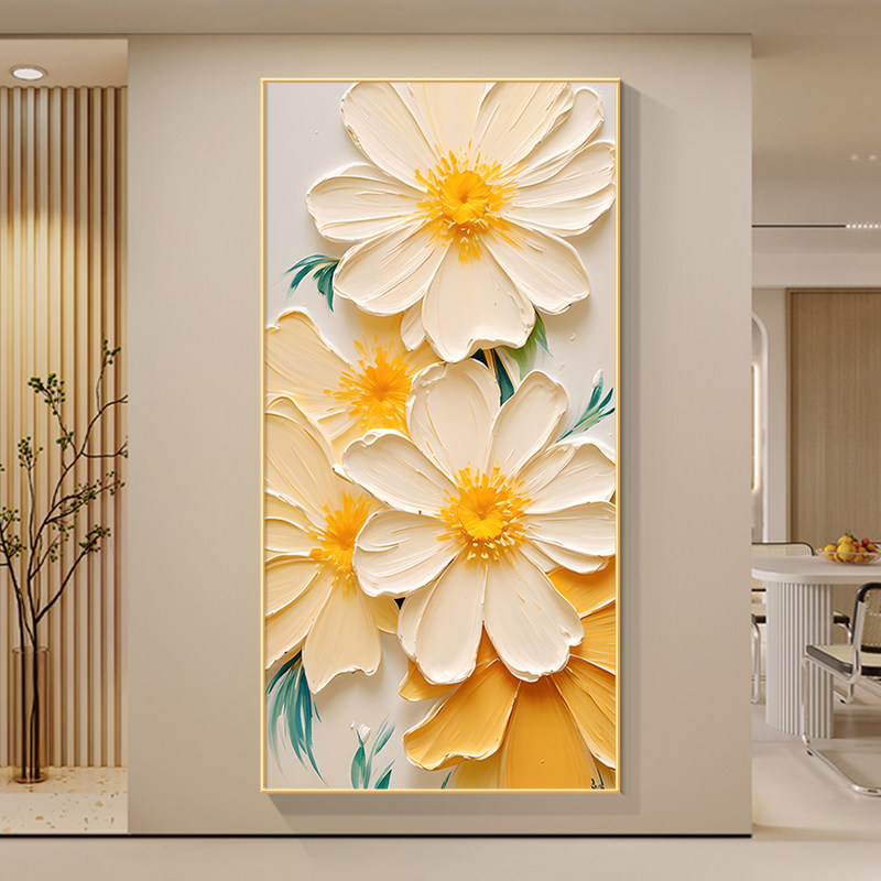 美式玄关装饰画走廊过道竖版挂画欧式餐厅背景墙壁画手绘花卉油画