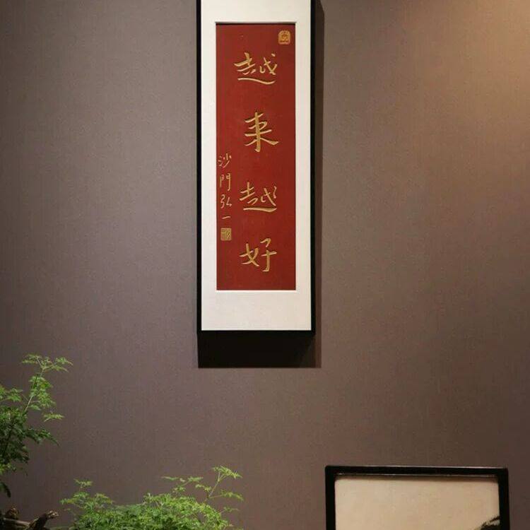 新中式越来越好书法字画入户玄关茶室竖版长条装饰画走廊背景挂画