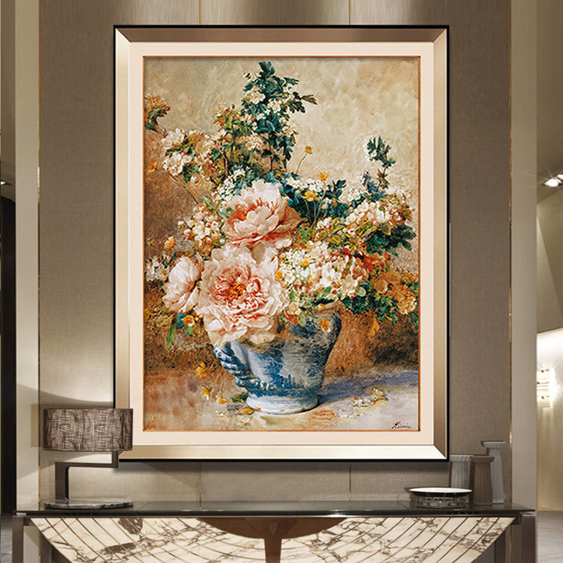 美式入户玄关装饰画走廊过道壁画客厅花卉仿油画欧式餐厅复古挂画