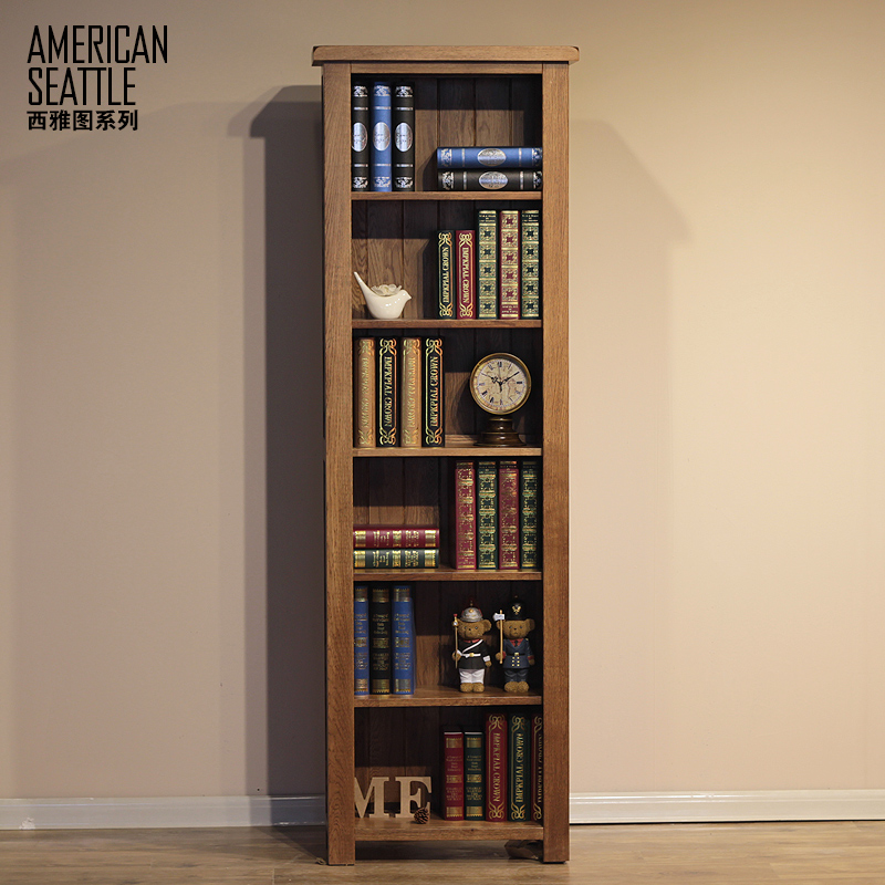 特价实木窄书柜书架白橡木书橱储物柜置物架美式简约家居木质书柜