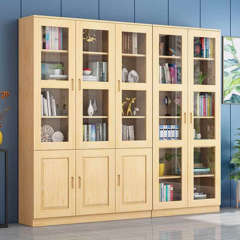 实木带玻璃门书柜书架自由组合松木特价书橱定制柜子置物架储物柜