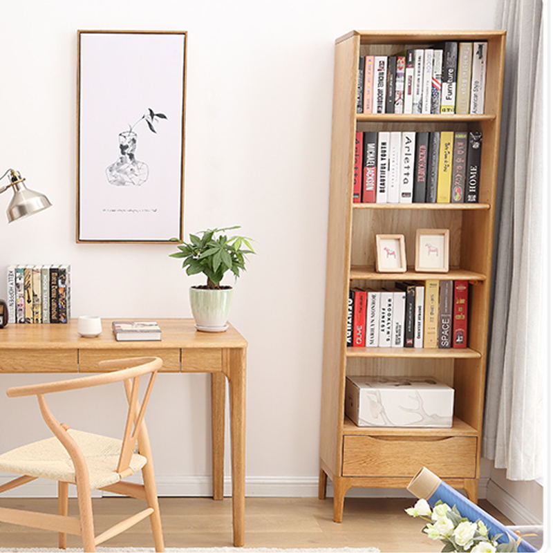 特价实木窄书柜书架白橡木书橱储物柜置物架北欧简约家居木质书柜