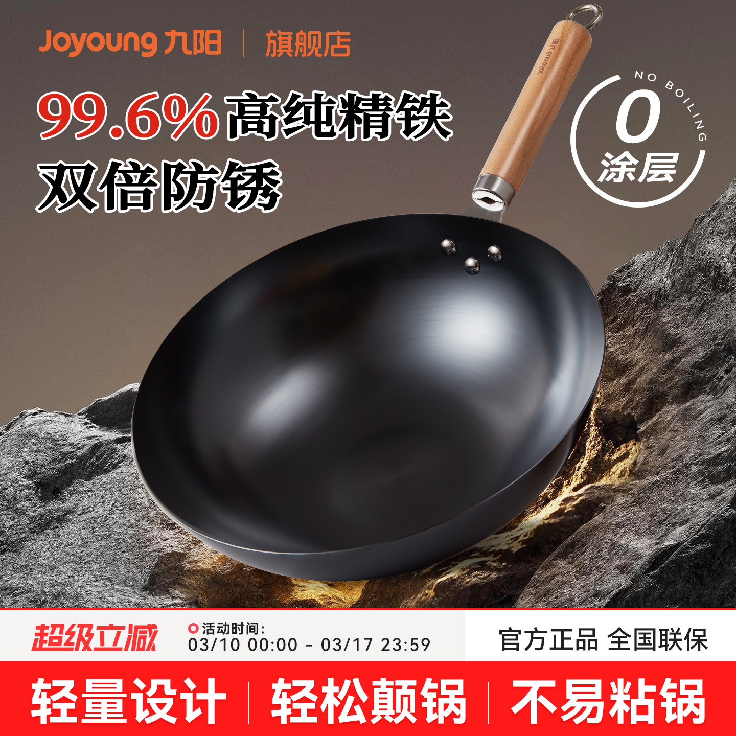 九阳铁锅无涂层炒锅家用炒菜锅不易粘锅电磁炉专用燃气灶旗舰店炊