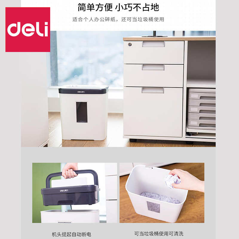 得力碎纸机9939家用自动办公室电动大功率商用便捷桌面纸张文件迷你小型手动粉碎机神器5级保密碾碎机光盘卡