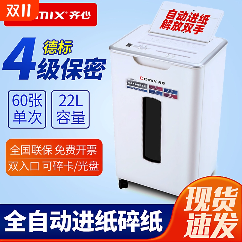 齐心碎纸机办公商用全自动进纸电动粉碎机办公室用家用小型纸张自动进纸粉纸机废纸高保密处理大功率碎纸机