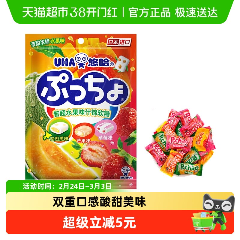 UHA悠哈日本进口普超软糖水果味90g*1袋糖果零食夹心橡皮糖年货
