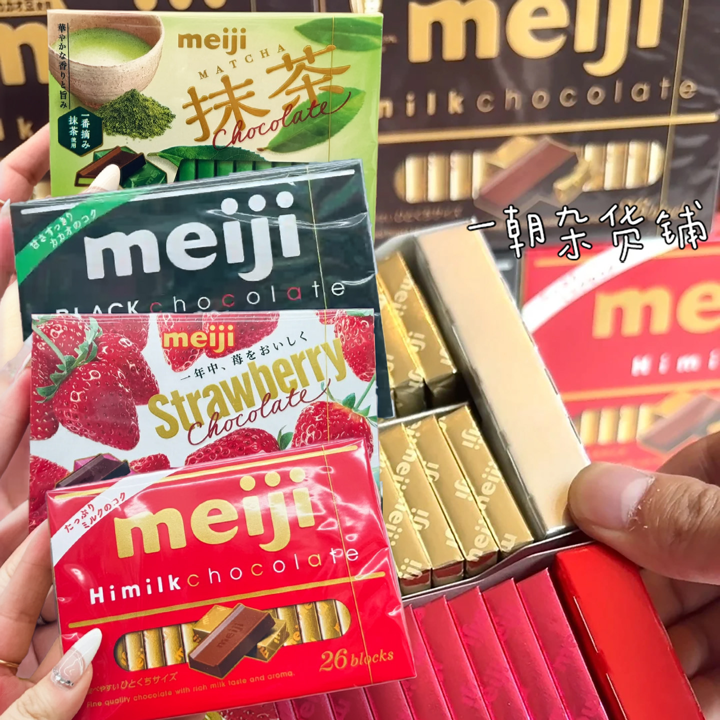 包邮日本零食Meiji明治钢琴纯黑巧克力草莓浓牛奶抹茶夹心巧克力
